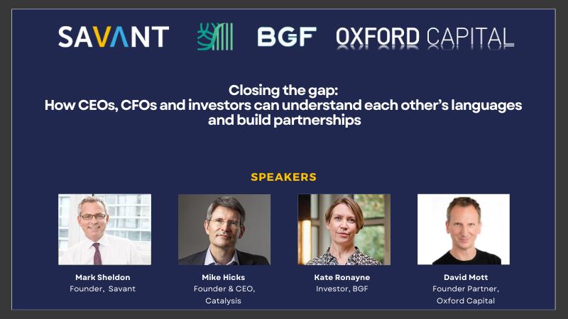 The discussion was shaped by insights from Mike Hicks (Catalysis Advisory), Kate Ronayne (BGF), David Mott (Oxford Capital) and Mark Sheldon (Savant). Their combined experience created a clear picture of what truly governs momentum in a growth journey: capability, communication and the quality of relationships around the table.